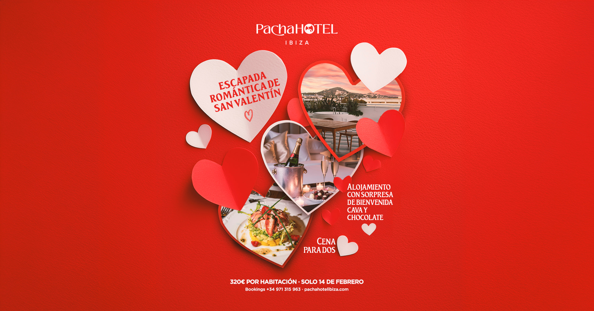 Una escapada chic de San Valentín en Ibiza que combina una estancia de una noche en un hotel elegante, cava y chocolates de bienvenida, y una cena gourmet pensada para compartir el 14 de febrero. En esta época del año, Ibiza muestra su lado más íntimo, ideal para disfrutar de su belleza natural, gastronomía local y una experiencia romántica en hotel. 320 € por habitación, válida solo la noche del 14 de febrero.